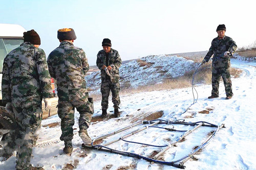 正值寒冷季节,工区最低温度-28℃,在做好疫情防控的前提下,物化探队工程物探勘查院技术人员不畏寒冷,艰苦奋斗,依然坚守工作岗位,严格按照相关技术要求,认真开展野外勘查工作,诠释了共产党员的高尚情操。